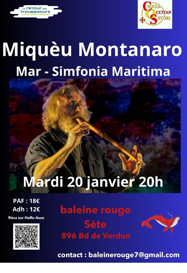 Miquèu MONTANARO serà a Seta per un concèrt excepcionau : MAR. SIMFONIA MARITIMA lo 20 de genièr a 8 oras lo ser